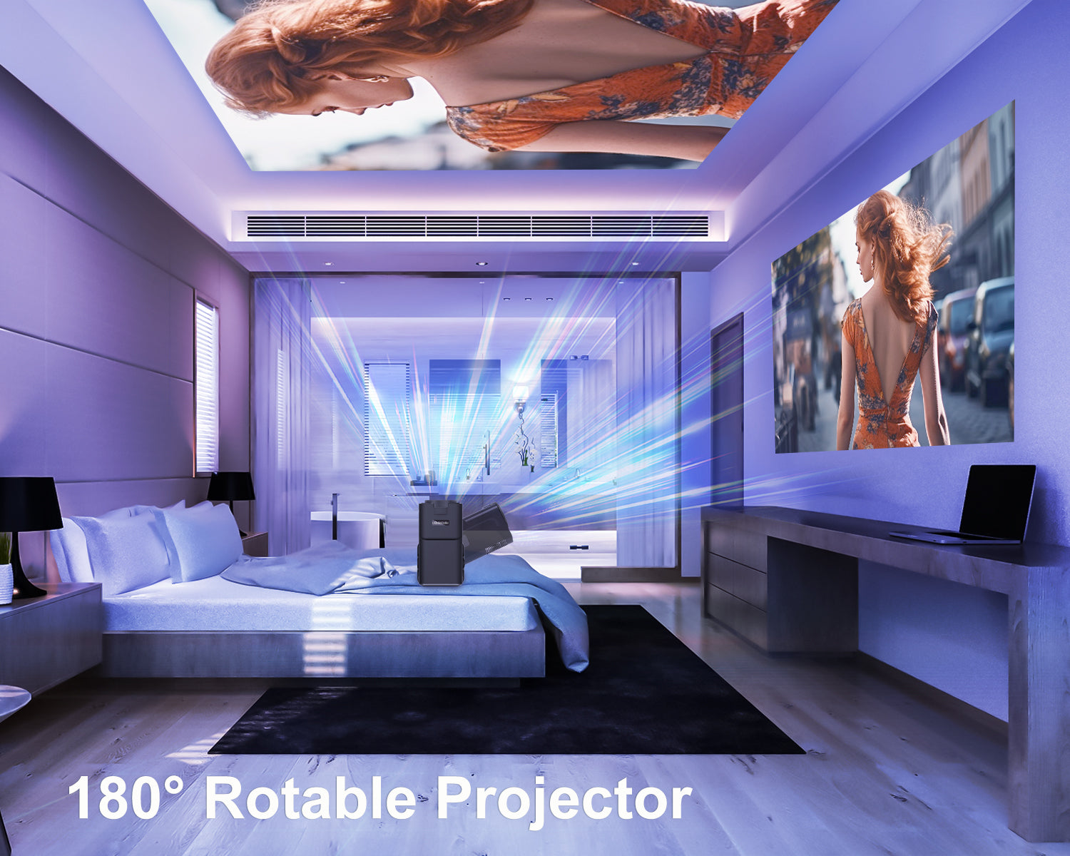 Lay back in bed and project onto the ceiling for a cozy late-night movie.